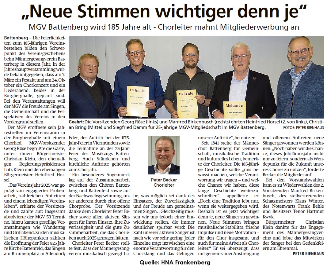 Aktuelle Informationen des MGV 1841 Battenberg/Eder