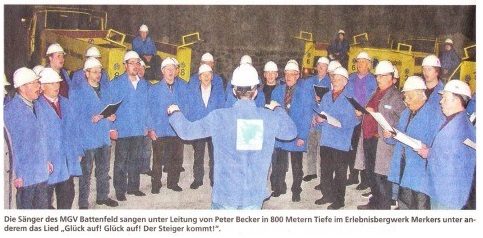 Battenbergberg Männerchor singt 800 Meter tief unter der Erde