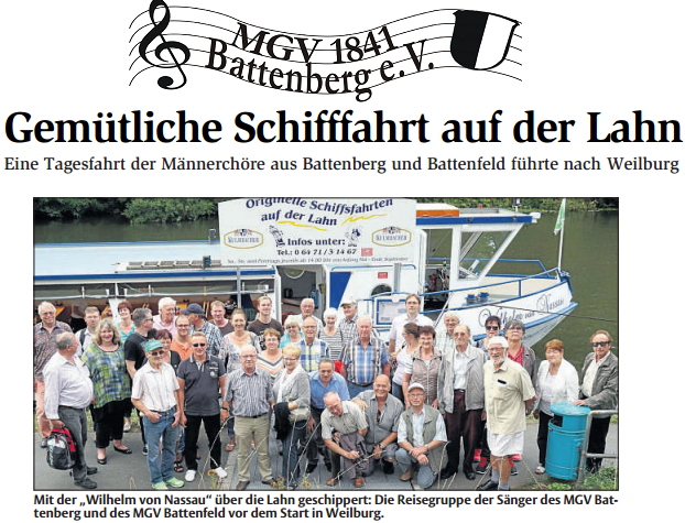 Alle Sänger in einem Boot - Chorprobe & Schifffahrt auf der Lahn